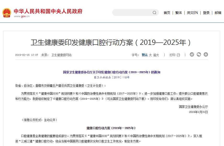 隨著消費(fèi)水平的提升與健康意識(shí)的覺醒,消費(fèi)者對(duì)口腔健康的重視程度日益增強(qiáng)。國(guó)家衛(wèi)生健康委辦公廳在2019年1月印發(fā)的《健康口腔行動(dòng)方案(2019-2025年)》中明確提出了健康口腔行動(dòng)工作指標(biāo)。方案倡導(dǎo),在2025年,成人每天2次刷牙率(%)將由2016年的36.1%提升至2025年的45%,并指出要推動(dòng)口腔健康制造業(yè)創(chuàng)新升級(jí)。