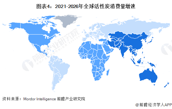 就我國情況來看,隨著工業(yè)部門對水的需求不斷增加,以及政府關(guān)于防止水污染和控制行動計劃的法規(guī)不斷變化,都增加了我國對水處理活性炭的需求;同時,近年來我國的食品飲料以及工業(yè)行業(yè)的市場規(guī)模不斷擴大,也帶動了活性炭需求量的不斷增長。根據(jù)Mordor Intelligence數(shù)據(jù)預(yù)測,預(yù)計在2021-2026年間,亞太地區(qū)將保持全球最高的的活性炭消費量增速,其中我國活性炭消費量增速將成為亞太地區(qū)整體高增的主要推動力。
