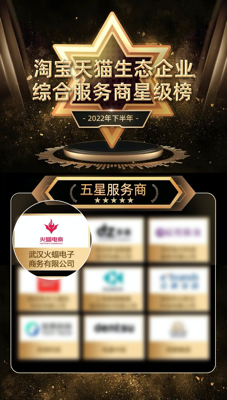 2022年下半年淘寶天貓生態企業評級公布,火蝠電商再次榮獲五星服務商
