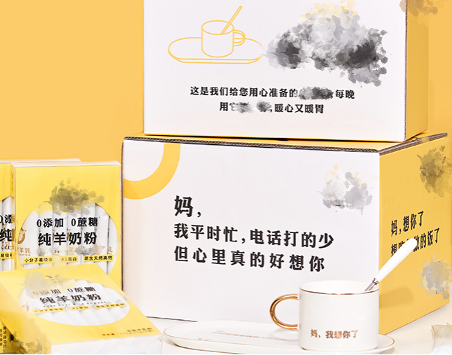 ‘媽,我想吃你做的飯了’‘媽,我平時(shí)忙,電話打的少,但心里真的好想你’‘爸,注意身體’,南空(花名)提到,在產(chǎn)品外包裝上,它印有很多的暖心文案,讓產(chǎn)品替用戶說話,進(jìn)一步強(qiáng)化情感價(jià)值,增強(qiáng)用戶對(duì)產(chǎn)品的親和度。