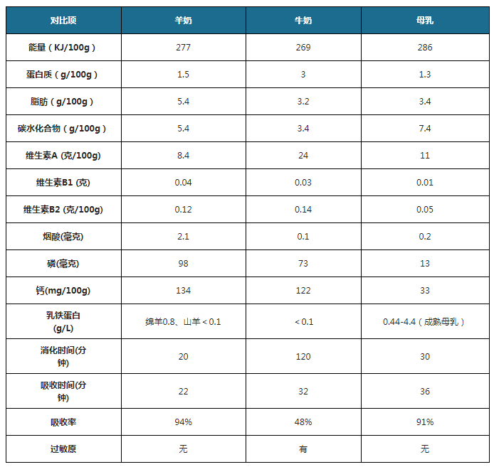 ▲羊奶和牛奶的營(yíng)養(yǎng)數(shù)據(jù)對(duì)比,圖片來自于網(wǎng)絡(luò)