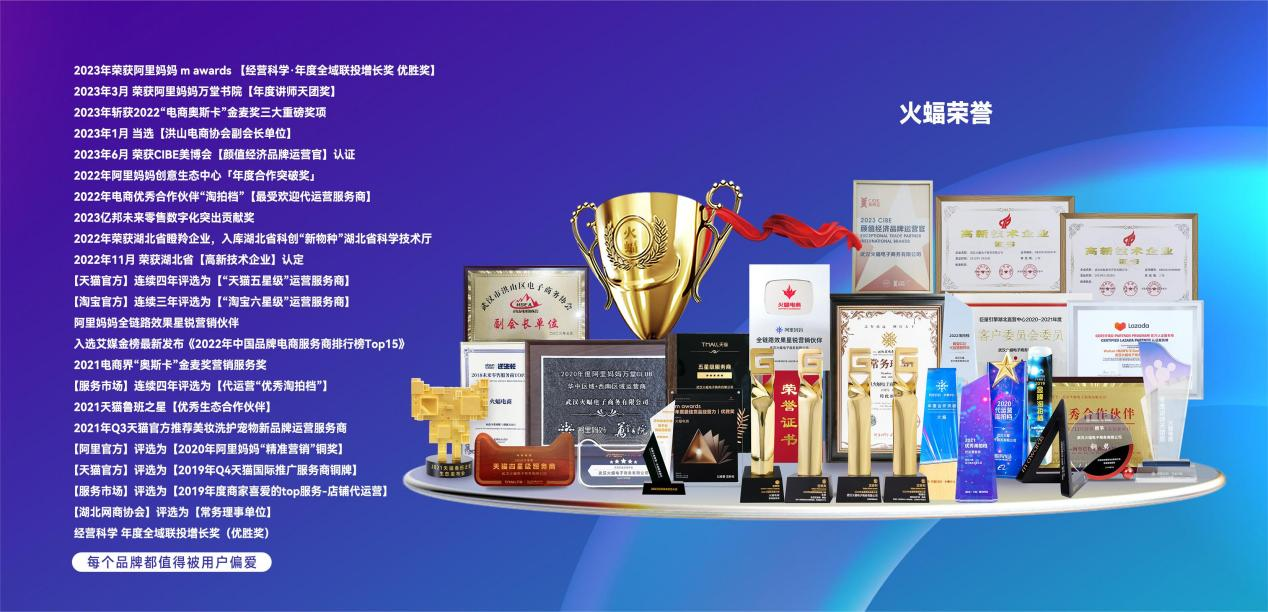 據(jù)了解,武漢火蝠電子商務(wù)有限公司(以下簡稱“火蝠電商”)就是周生(化名)選擇的代運營合作伙伴,即本次618店鋪增量的幕后推手。碰巧的是,在6月初,該企業(yè)還憑借著對美妝賽道的理解和創(chuàng)新能力,一舉斬獲2023CIBE美博會【顏值經(jīng)濟品牌運營官】重量級認(rèn)證。近9年的電商服務(wù)經(jīng)驗,以店鋪代運營、爆品打造等服務(wù)見長的火蝠電商,正在成為越來越多品牌主的選擇。而其強大的“數(shù)字營銷”能力,是周生(化名)選擇合作的理由之一,也是店鋪增長的關(guān)鍵。