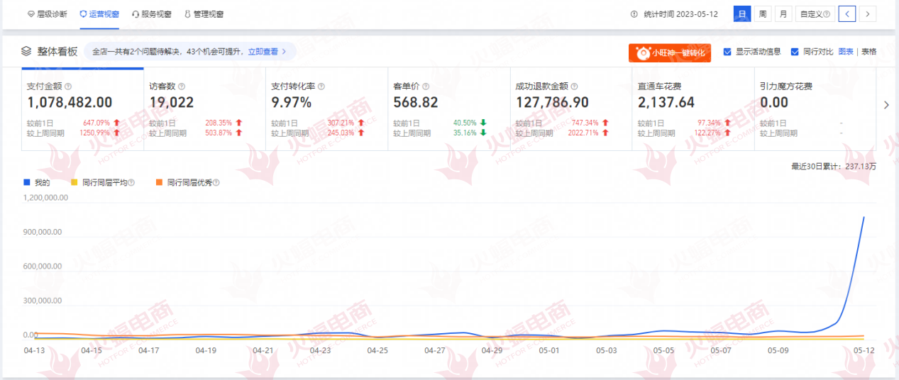 ▲接手店鋪后的數(shù)據(jù)變化。圖/火蝠電商