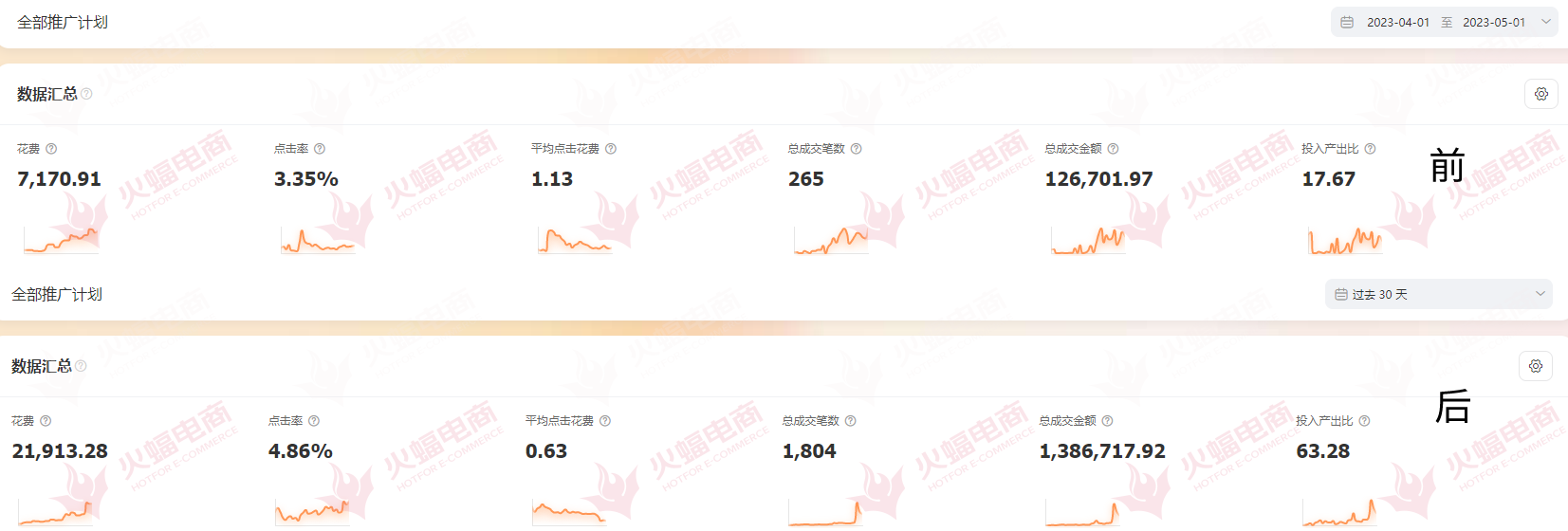 ▲店鋪投產(chǎn)比前后變化。圖/火蝠電商