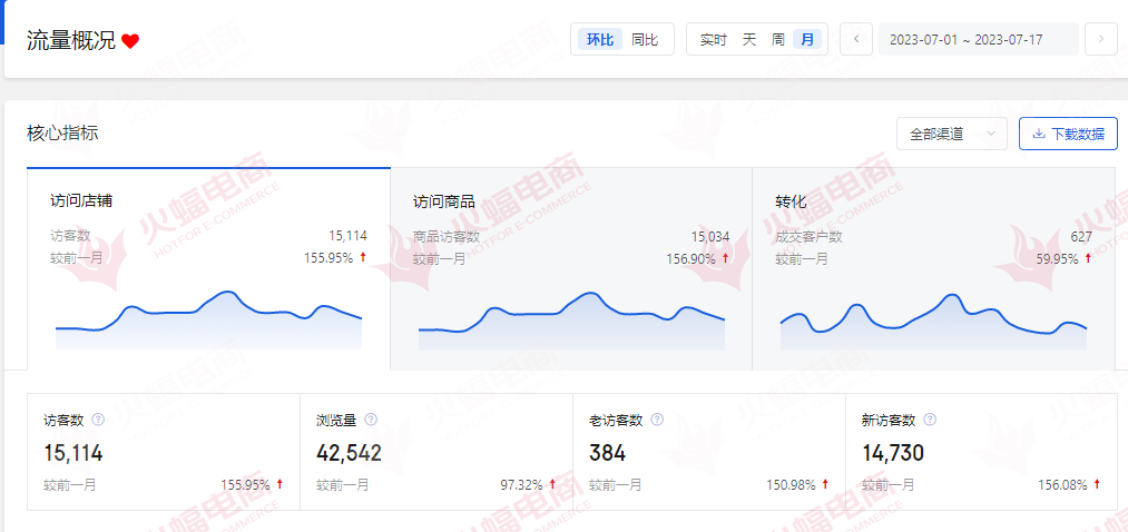 借勢618大促,成功“找對人,說對話”,整個項目從策劃到落地,短短一個月,團隊就高效完成了店鋪上線、頁面裝修、產品上架、推廣引流等相關工作,幫助品牌方京東店鋪銷量爆發。數據顯示,新開奶粉店鋪僅上線一個月,銷量突破46萬,訪客增長155.95%,整店數據取得持續增長。本次呈現的京東店鋪奶粉類目案例,不僅獲得了品牌主秦浩(化名)的高度贊許,也再次強有力地證明了火蝠電商在多電商平臺運營和數字化營銷等方面的綜合實力。