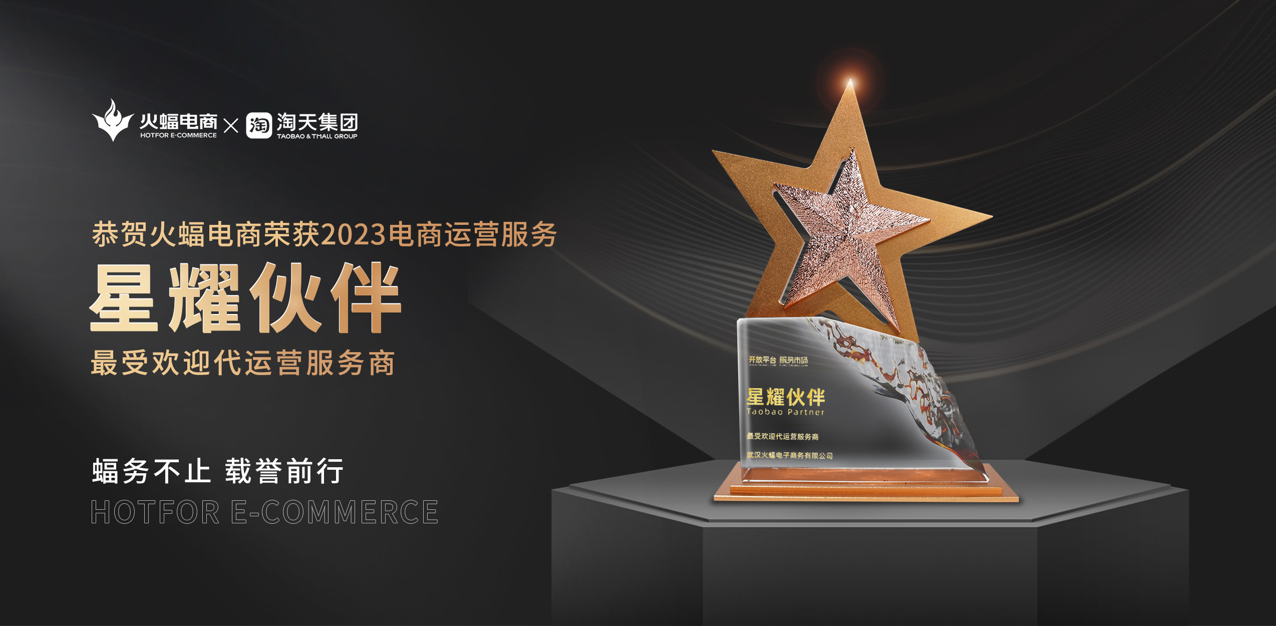 11月23日,淘寶天貓商家與生態伙伴大會在杭州順利舉辦,現場揭曉了多個重磅獎項,嘉獎2023年電商領域涌現出的優秀品牌及機構。品牌電商服務商,火蝠電商受邀參會,并憑借強大的精細化運營能力,在會上成功攬獲淘天集團“2023電商運營服務星耀伙伴?最受歡迎代運營服務商”榮譽獎項,得到行業的高度認可。