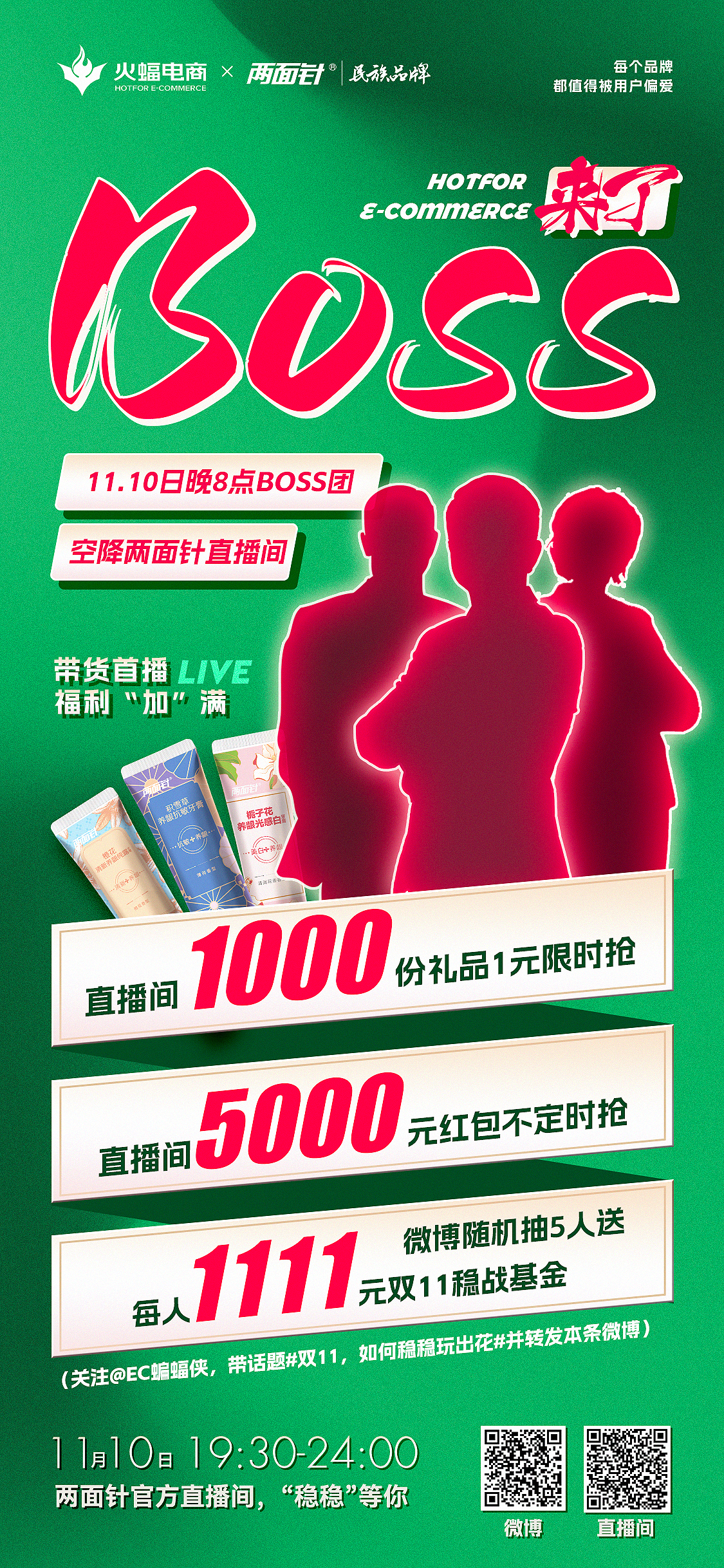 雙十一大促在即,兩面針與火蝠電商BOSS組團送福利