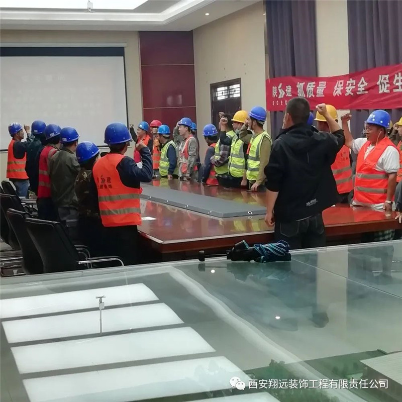 以人為本,安全發展!趕工期的同時,也要注意安全施工,延安新區全民健身運動中心項目部組織一線作業人員開展安全教育培訓,讓“安全為首,預防為主”的安全意識深入人心,確保安全施工。