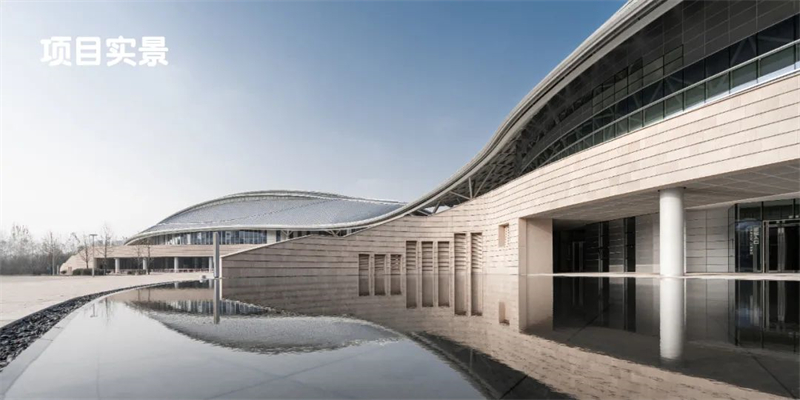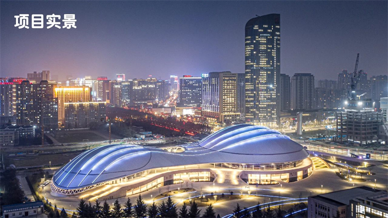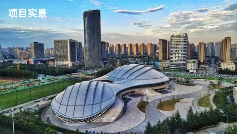 陜西省奧體中心項目原建筑由中國建筑設計院負責設計,我司在此基礎上對外立面進行了深化設計。整體造型寓意深刻,以人文歷史寓意。造型新穎、外觀設計現代感十足。以雙曲面網殼支撐的靈動飄逸的銀色屋面融合曲線平臺、多級步道及雙層柱廊等立面相結合的設計理念,外幕墻設計中既有仿秦俑鎧甲的開縫式疊鋪石材幕墻,呈現出一種雕琢過的歷史美感,又有型鋼邊緣和剔透的玻璃幕墻及金屬質感超強的鋁板幕墻進行點綴,突出了現代氣息。低調而獨特,猶如大唐樂舞中回環飄舞的絲帶,給人以靈動、飄逸之感!