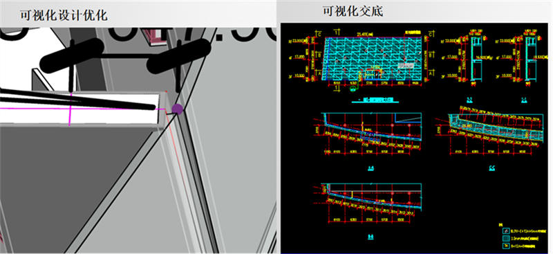 本工程的造型、收邊收口繁多,較為復雜,通過采用 BIM 進行深化設計、優化合理安排材料下單尺寸、施工順序,根據模型的逼真呈現,進行方案優化,節點改進,從而提高施工質量和觀感質量,并在施工前對工人進行 4D 可視化技術交底。