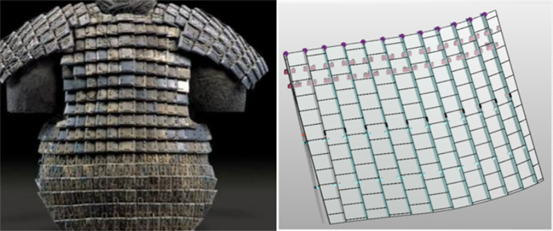 本項目石材幕墻具有視覺效果震撼、立體感強、安裝調節方便、防水性能好、成本低的開縫疊加式背栓石材幕墻系統。具有良好的創新性、實用性。石材排版及布置方式獨特,層次豐富。有效解決了傳統石材幕墻單調的排版方式,使得石材幕墻視覺效果更加立體,像在建筑上雕刻出的藝術品。其發明靈感來自秦朝士兵鎧甲鱗片。