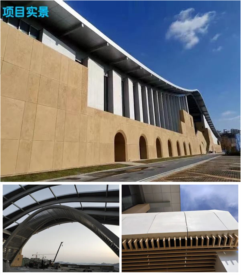 本項目幕墻工程施工范圍包含但不僅限有輕型混凝土掛板幕墻、多系列玻璃幕墻、鋁板幕墻、仿砂巖藝術質感涂料墻、鋁合金門窗、鋁合金百葉、鋁合金裝飾格柵等系統幕墻。