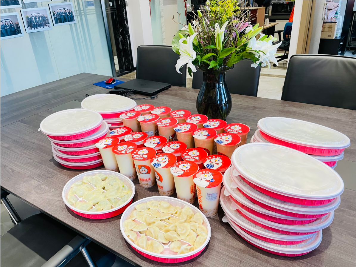 今日冬至,午餐時(shí)間公司為大家準(zhǔn)備了多種口味的餃子和奶茶,讓公司員工感受集體的溫馨、節(jié)日的氣氛,緩解員工對(duì)家的思念之情。這是弘揚(yáng)我國(guó)的傳統(tǒng)節(jié)日及飲食文化,也是我們翔遠(yuǎn)“以人為本”的企業(yè)理念。