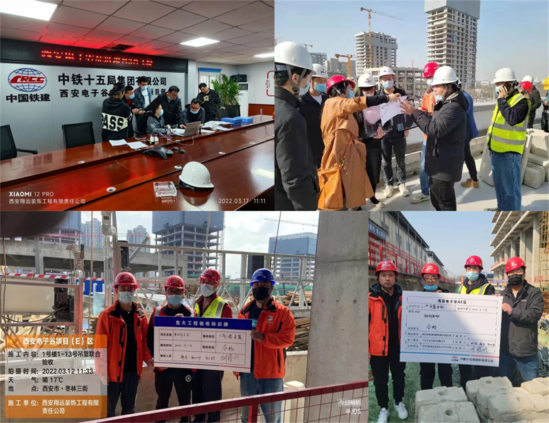 2021年底西安經歷新冠疫情全城封鎖期間我司嚴格遵守國家相關規定。設計部居家辦公深化幕墻圖紙,與設計院及總承建單位網上溝通深化設計幕墻相關圖紙;材料部積極推動各主材的樣品開樣;爭分奪秒,在經歷了為期37天的疫情封城后,我司人員過年休假期間也沒有絲毫放松,于2022年3月3日已與設計院完成了所有E區幕墻工程圖紙的簽字蓋章。