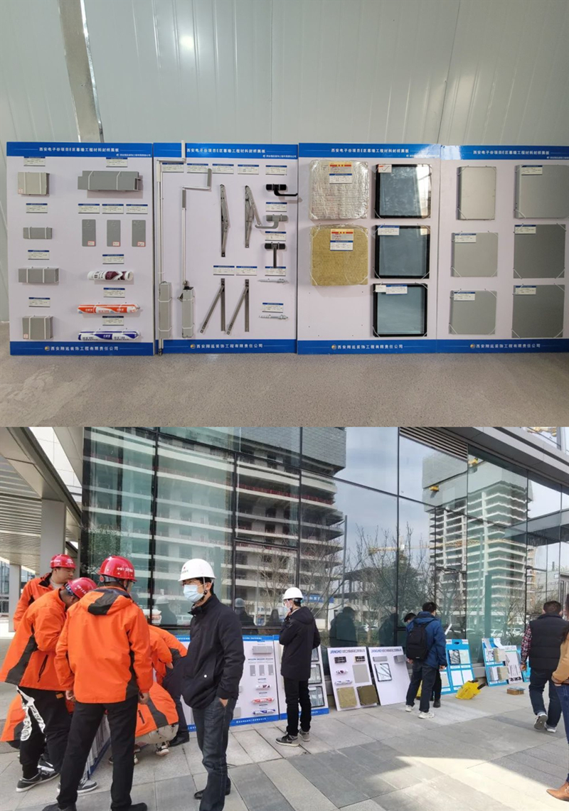 玻璃,鋁型材,鋁單板,密封膠及五金件的材料封樣展板,在多次現場封樣過程中不負業主監理,總承包單位領導的厚望,我們翔遠標準的材料封樣展板得到了各個單位的一致好評。
