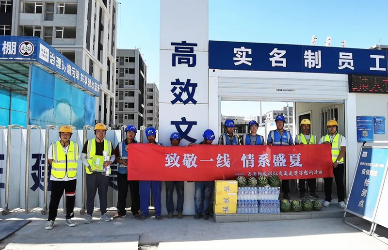 炎炎夏日,目前正值高溫天氣,酷熱的天氣給堅守在一線工地的工人師傅們帶來更多的挑戰(zhàn),汗水一次又一次的浸濕了身上的衣服,西安翔遠裝飾工程有限責任公司是一個注重人文關(guān)懷的大家庭,實時關(guān)注高溫天氣還在戶外工作的工人們身體健康狀況和生命安全,為在一線高溫工作的工人們送去夏日清涼、送去關(guān)懷。