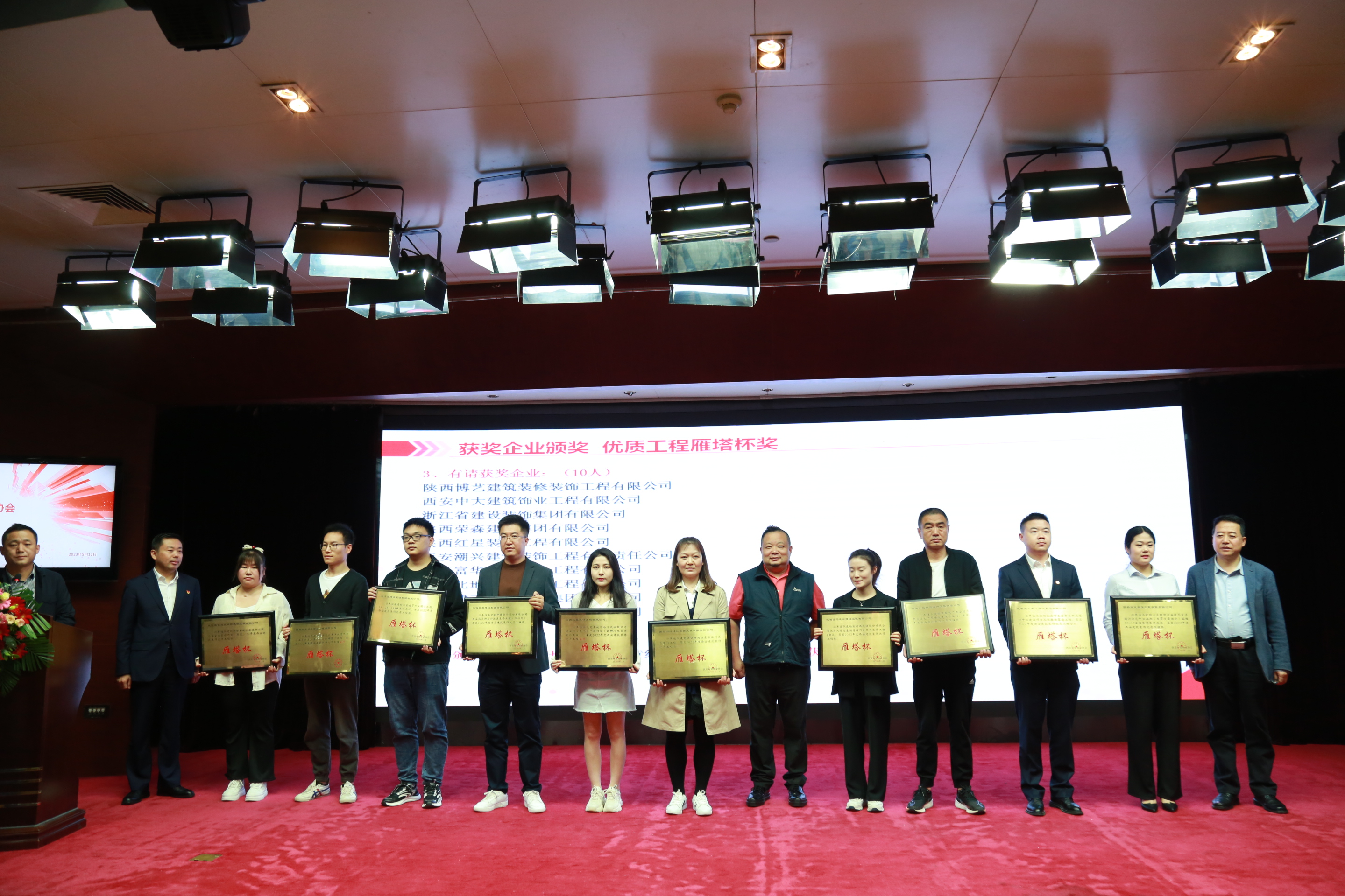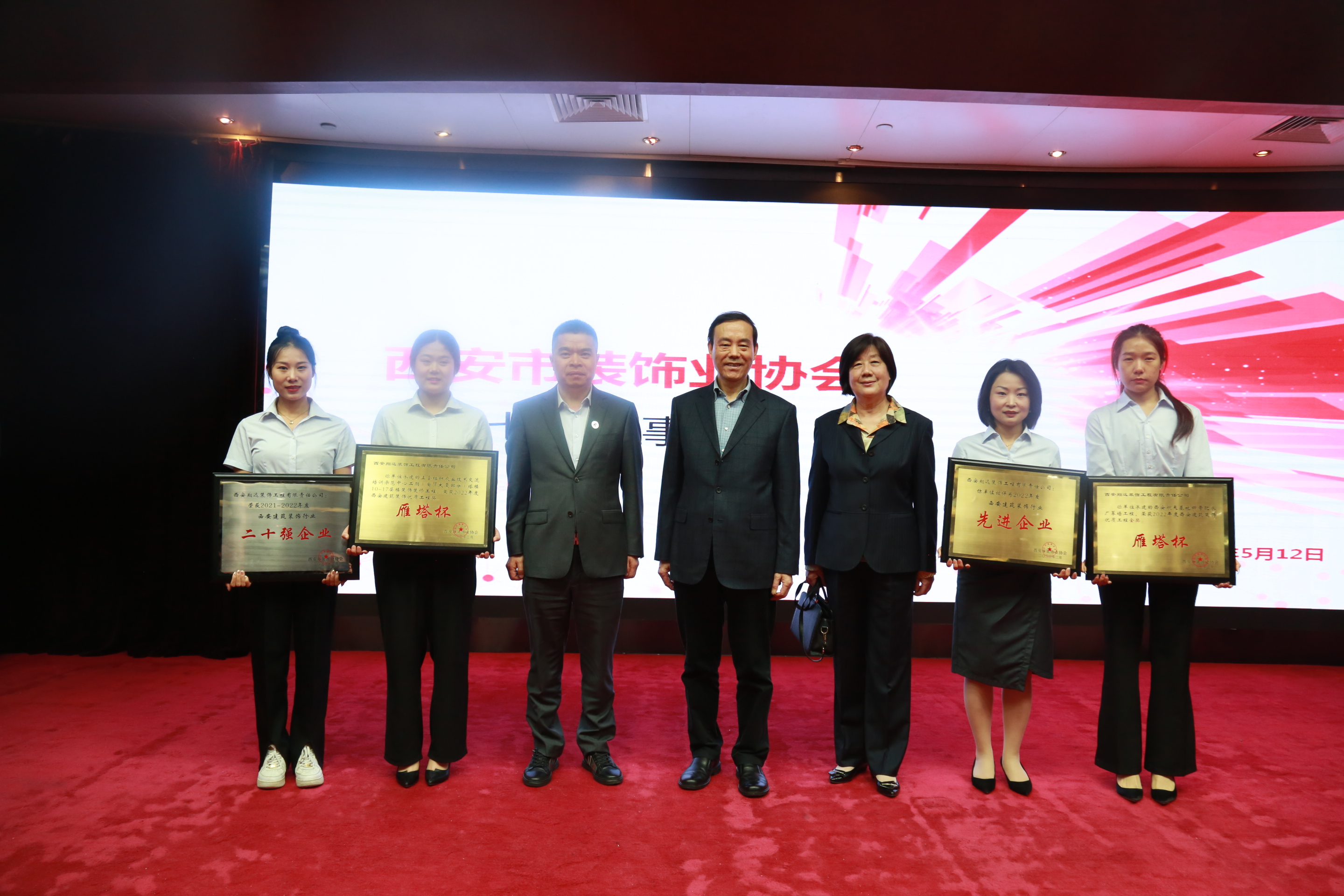 近日,西安市裝飾協會第二屆七次理事會暨表彰大會在西安高速神州酒店隆重召開。本次會議對“2022年度西安建筑行業優質工程(雁塔杯)”、“行業先進企業”、“2021-2022年度西安建筑裝飾行業二十強”、“優秀項目經理”等進行表彰,并為獲獎企業頒獎授牌,我司在本次大會中榮獲五大獎項。