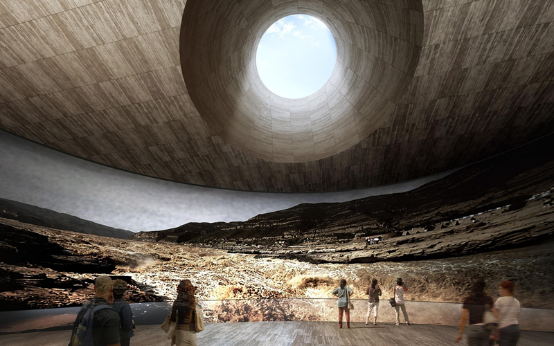 黃帝文化中心總平面由地面廣場(chǎng)、下沉式入口廣場(chǎng)、文化中心地區(qū)全地下建筑主體、地面綠化、內(nèi)部專用通道和專用停車場(chǎng)共同組成。內(nèi)部功能分區(qū)為陳列區(qū)、公共服務(wù)區(qū)、辦公區(qū)、藏品庫(kù)區(qū)。陳列區(qū)由序廳、軒轅傳奇展廳、黃帝美術(shù)館展廳、非物質(zhì)文化遺產(chǎn)展示中心和臨時(shí)陳列展廳共同組成。序廳平面 為橢圓形,是黃帝文化中心室內(nèi)空間的核心區(qū),也是游客進(jìn)入文化中心的第 一景觀。各陳列廳沿中央大廳周邊布置,共同組成黃帝文化中心內(nèi)部空間。