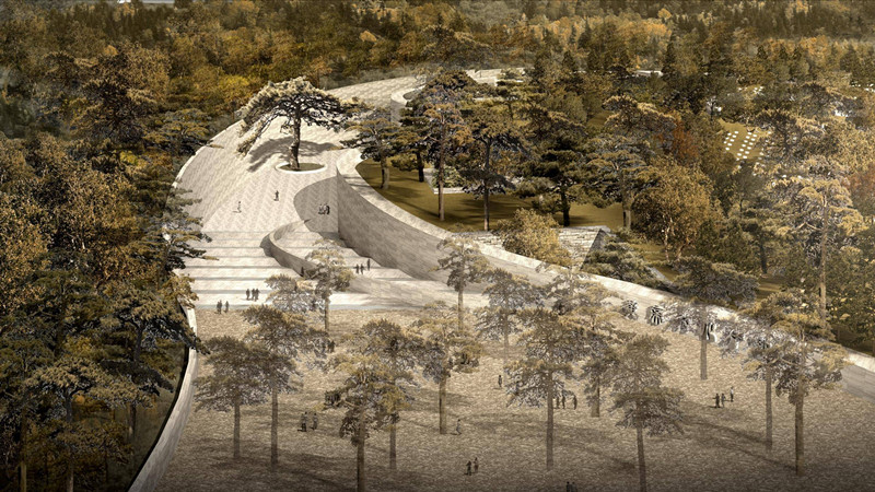 黃帝文化中心項(xiàng)目位于陜西省延安市黃陵縣軒轅廟東。黃帝文化中心建筑設(shè)計(jì)方案由中國(guó)工程院院士張錦秋大師親自設(shè)計(jì), 中國(guó)建筑西北設(shè)計(jì)院具體承辦,工程概算投資 3.91億元。黃帝文化中心建筑主體全部隱藏于地下,建筑頂板設(shè) 2 米以上覆土,密植成林,與橋山 81.9 公頃古柏森林渾然一體,使橋山綿延的山形一直延伸至印池兩岸,橋山對(duì)軒轅廟成環(huán)抱之勢(shì),凸顯黃帝陵的“圣地感”。黃帝文化中心與軒轅廟、黃帝陵共同構(gòu)成黃帝陵景區(qū)地景文化,是展示黃帝文化、弘揚(yáng)愛(ài)國(guó)主義、傳播民族文化的重要平臺(tái)。