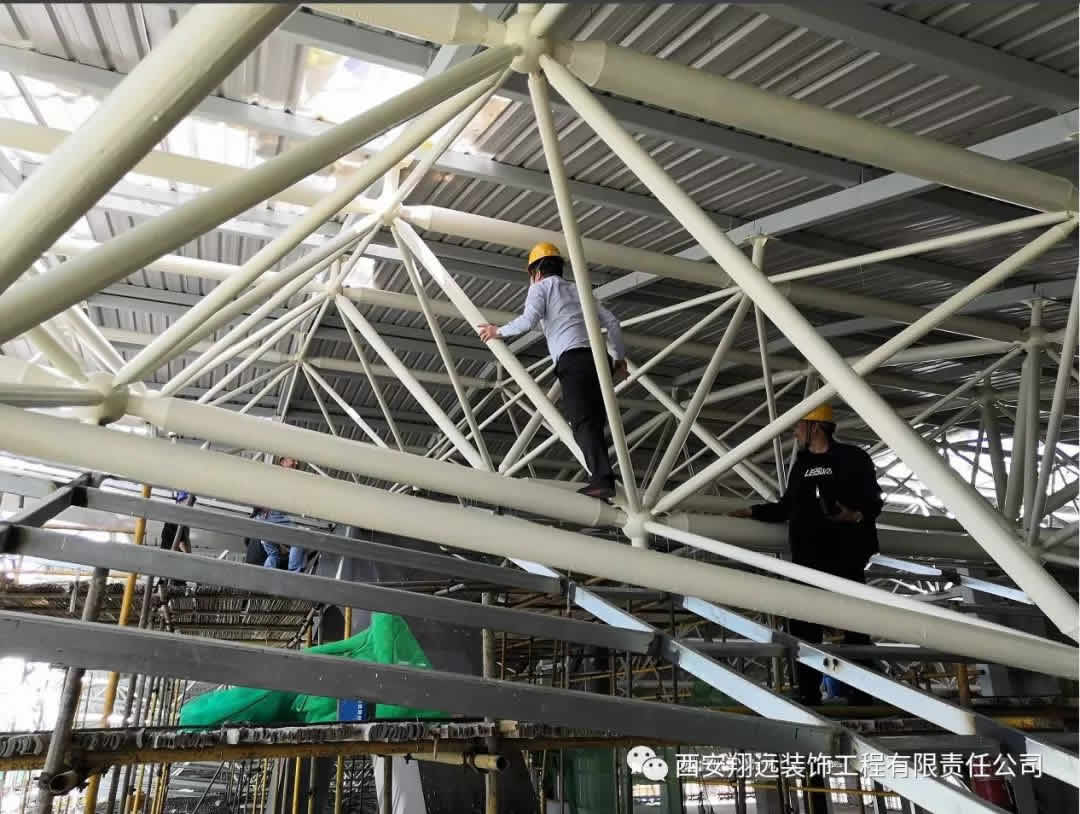 陜西省奧體中心體育館占地約86603.6㎡,觀眾總坐席約為7048座,分為比賽館和訓練館,總建筑面積72450 ㎡。項目為省重點項目,省、市領導及各部門高度重視。公司領導強調:我們責任重大,在工作開展中,一定要注意做出企業形象,把每一項工作都做到位、做細致。細節決定成敗!