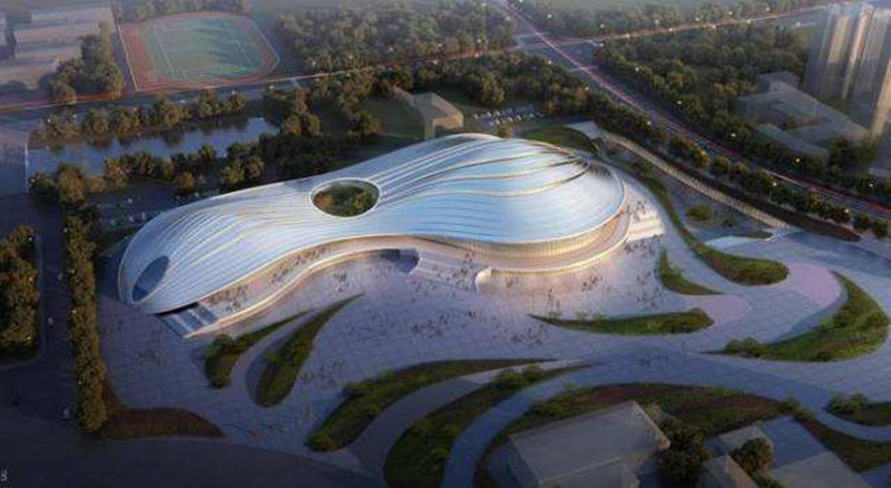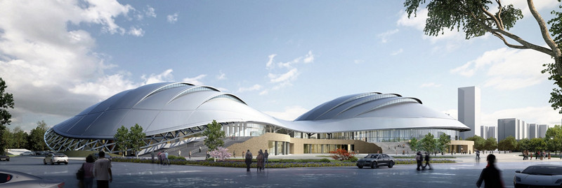 陜西奧體中心體育館的屋蓋外形設(shè)計(jì)新穎獨(dú)特,猶如大唐樂舞中回環(huán)飄舞的絲帶,給人以靈動(dòng)、飄逸之感。西安作為絲綢之路的起點(diǎn),該館象征著絲綢之路起點(diǎn)上徐徐展開的絲帶。