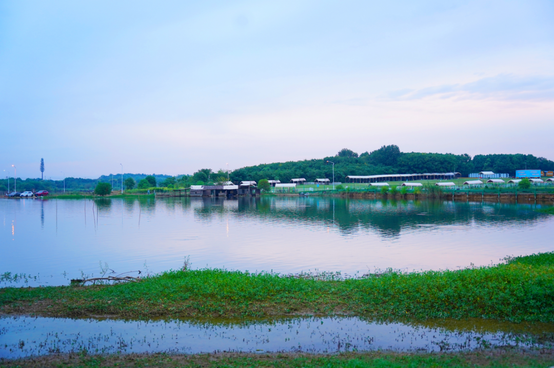 “采菊東籬下,悠然見南山”,湖水、微山、果園、樹木、草、風(fēng)、花、夕陽、飛鳥、鳴蟲、竹籬、小木屋.……還有當(dāng)日偶遇的像棉花糖一樣飄蕩的云朵和靜謐的藍(lán)天,仿佛就是陶淵明筆下的夢(mèng)想境地。